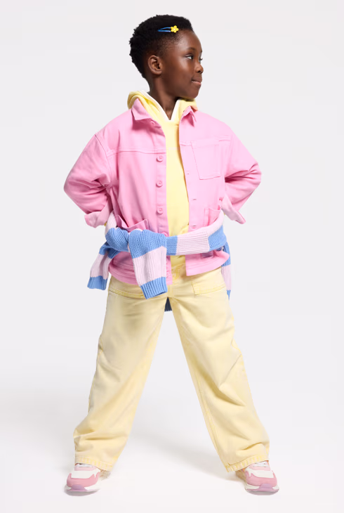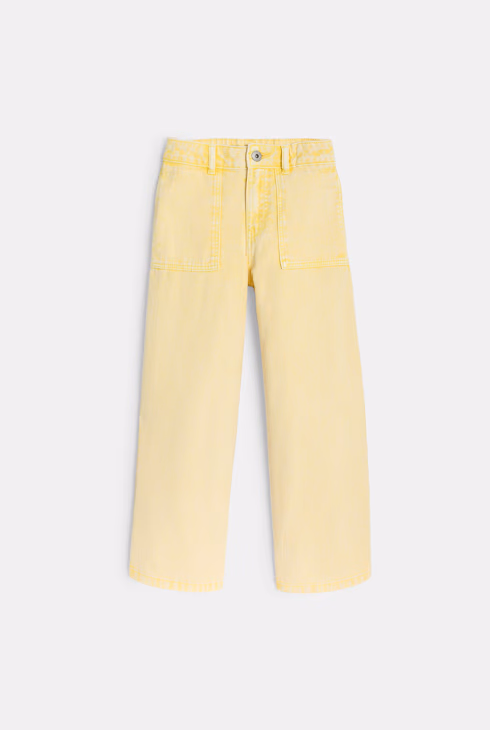 Pantaloni ampi in tela washed giallo pastello bambina