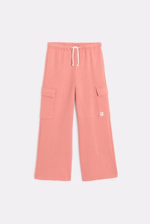 Pantaloni ampi in tessuto felpato rosa antico bambina