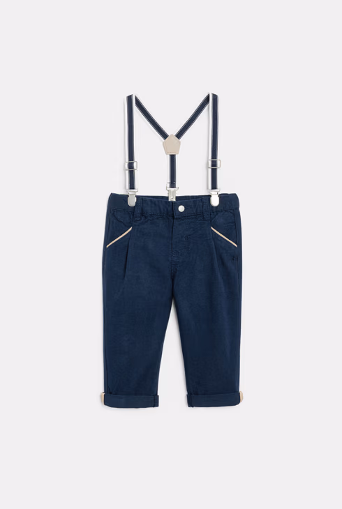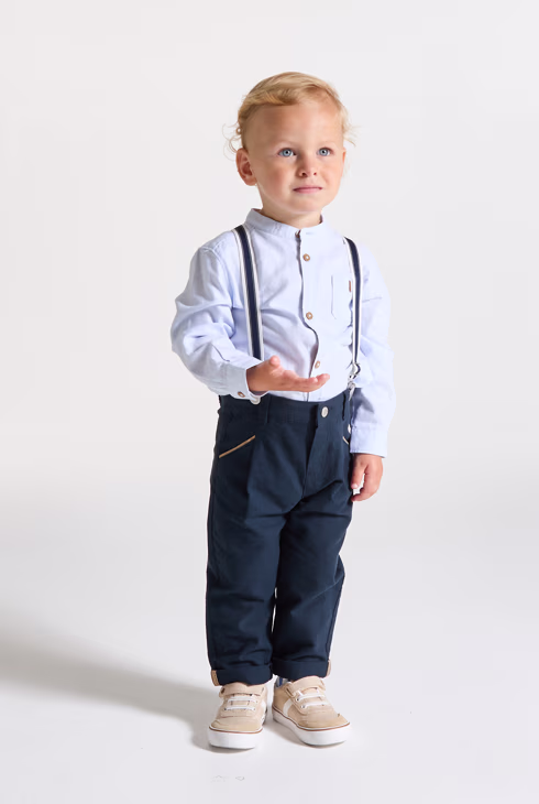 Pantaloni chino con bretelle blu navy neonato