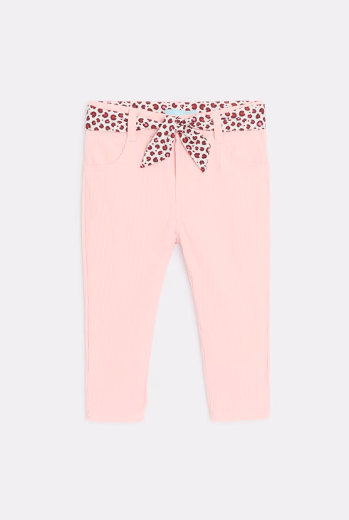 Pantaloni rosa in velluto con cintura leopardata per neonata