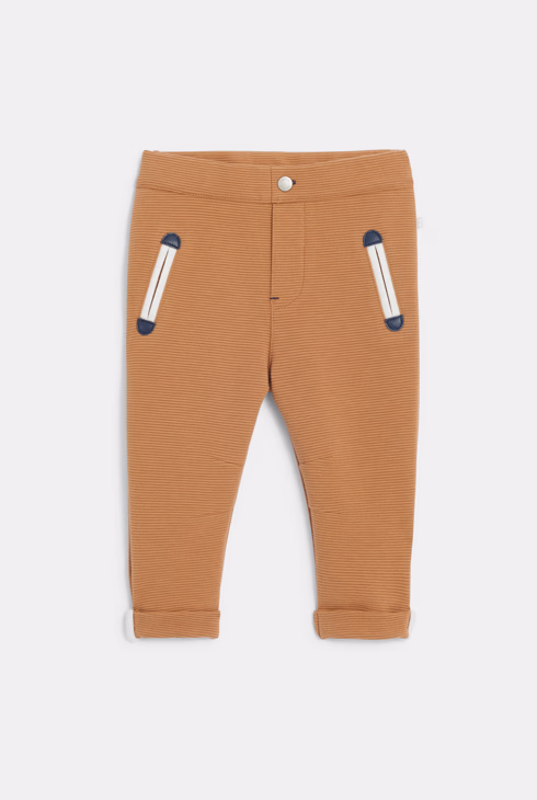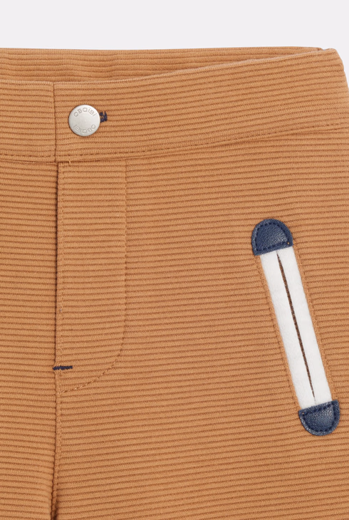 Pantaloni verdi marroni in tessuto fantasia a coste per neonato