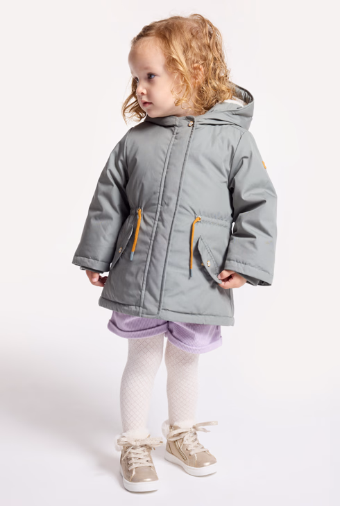 Parka 2 in 1 verde kaki idrorepellente foderato per neonata