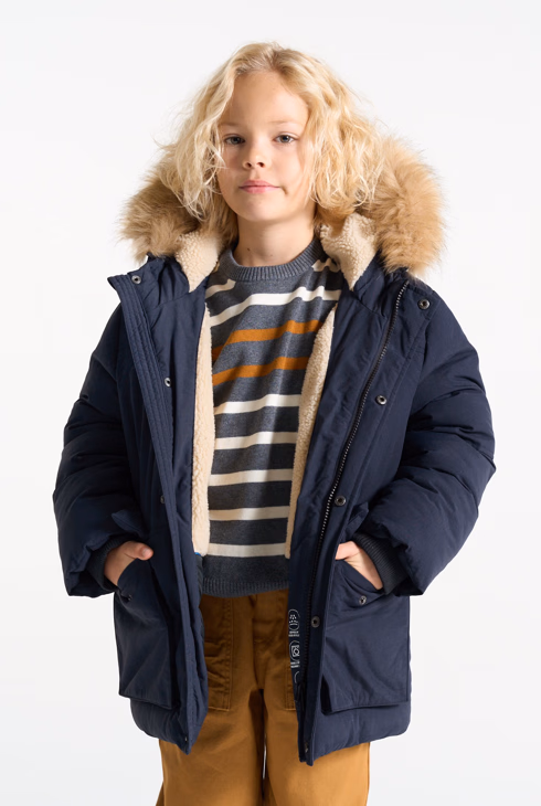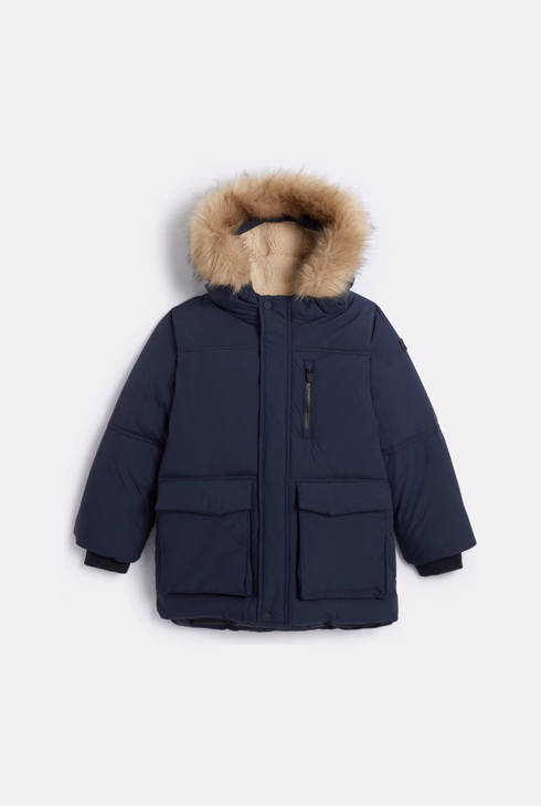 Parka imbottito con cappuccio blu navy per bambino
