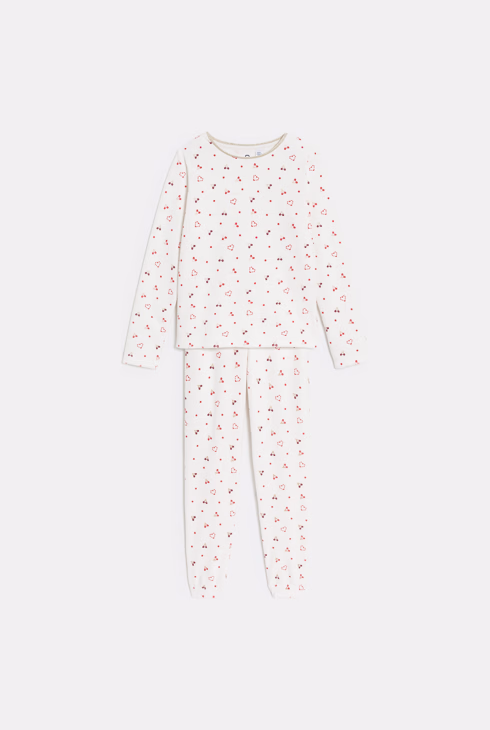 Pigiama 2 pezzi bianco in ciniglia per bambina