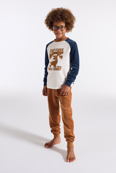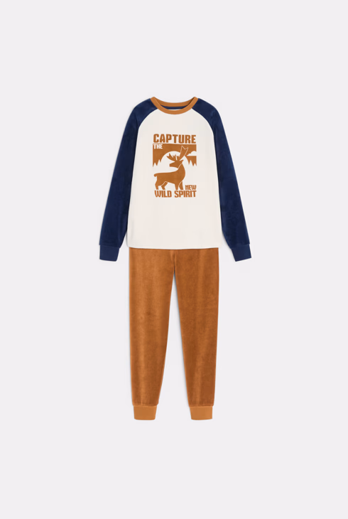 Pigiama 2 pezzi in ciniglia blu con motivo cervo per Bambino