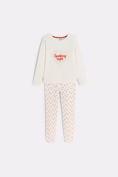 Pigiama 2 pezzi in ciniglia écru con scritta bambina
