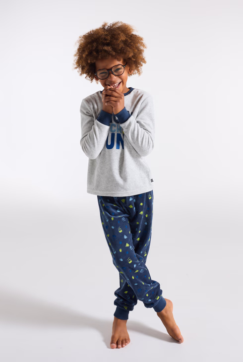 Pigiama 2 pezzi in ciniglia grigio con scritta bambina