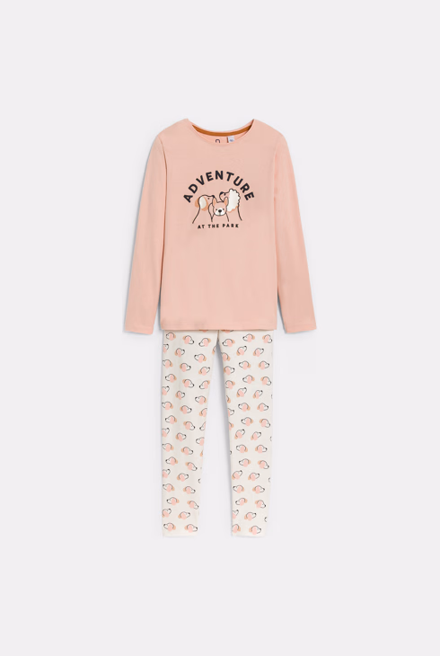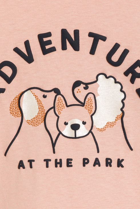 Pigiama 2 pezzi in jersey rosa con motivo cane per bambina