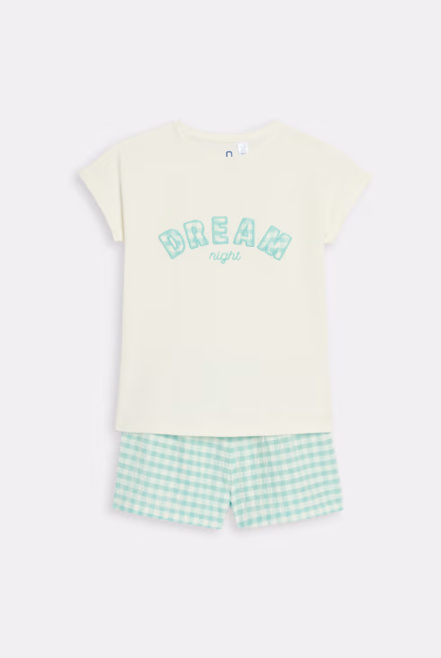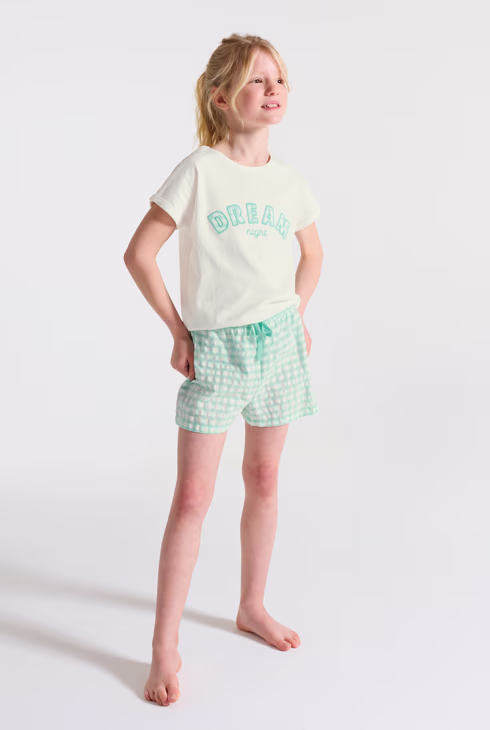 Pigiama corto 2 pezzi in jersey verde pastello bambina