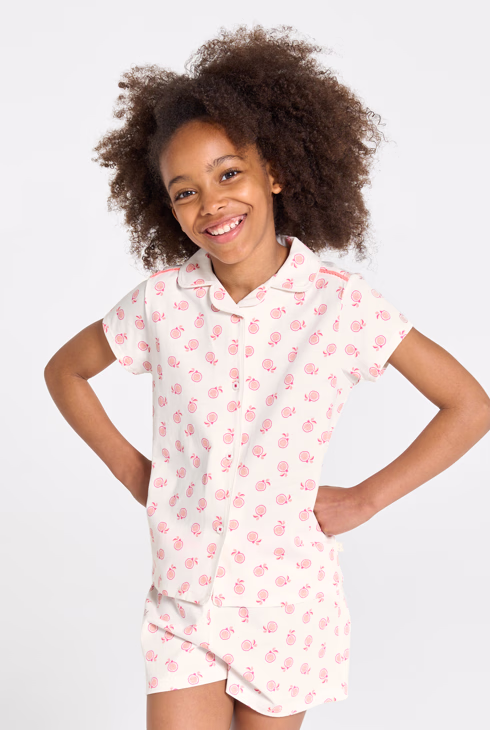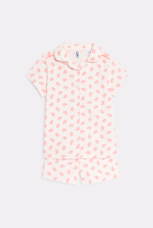 Pigiama corto rosa in jersey stampato con frutti per bambina