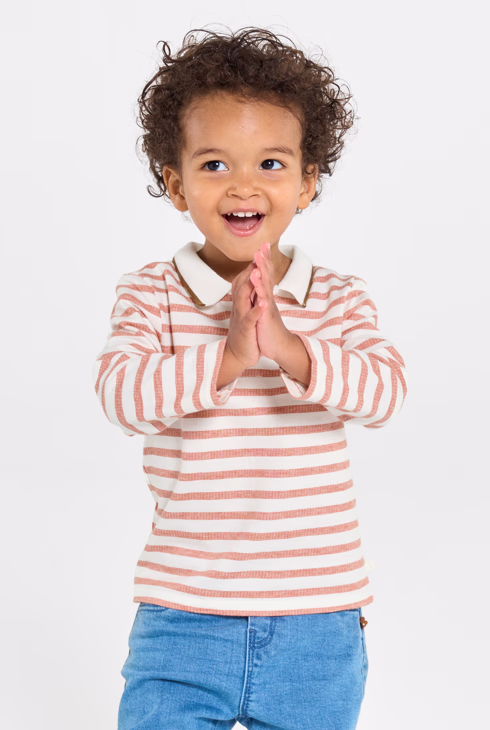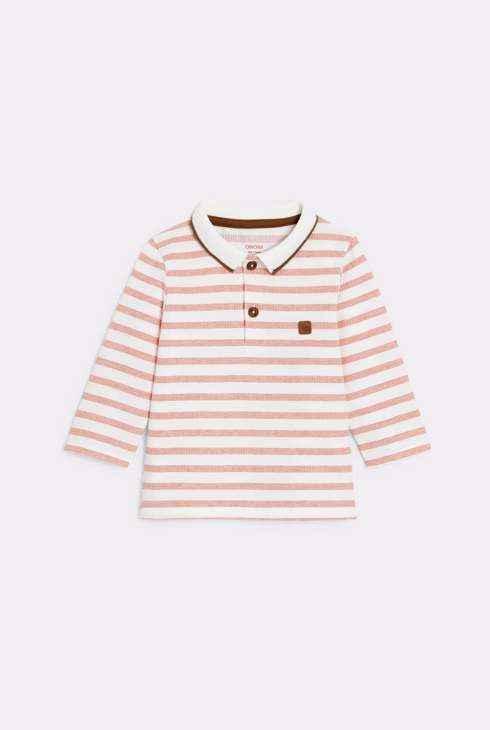 Polo a maniche lunghe in tessuto felpato a righe per neonato