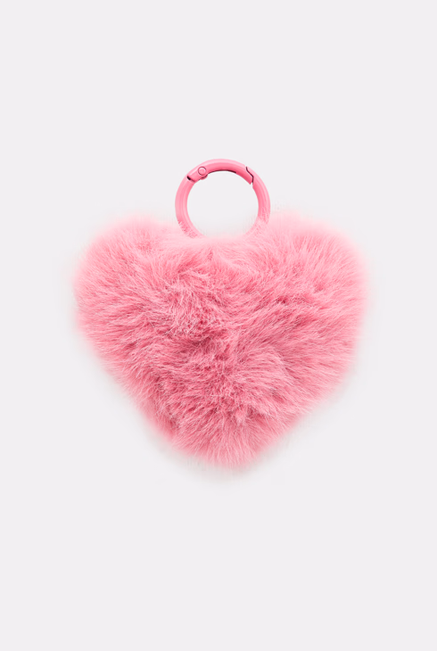 Portachiavi con cuore in pelliccia ecologica rosa Bambina