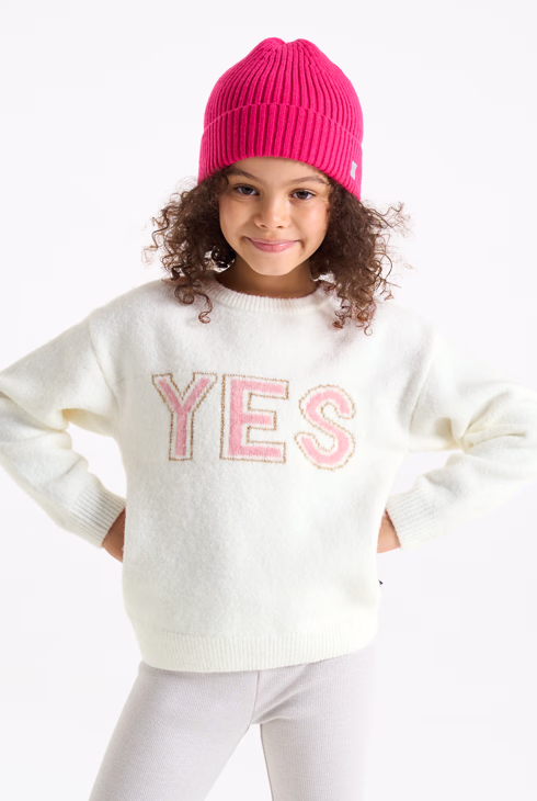 Pullover bianco con scritta bambina