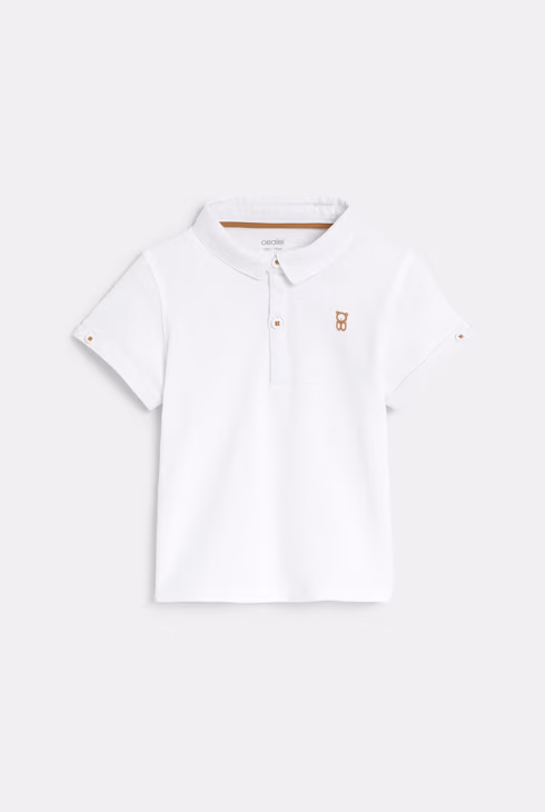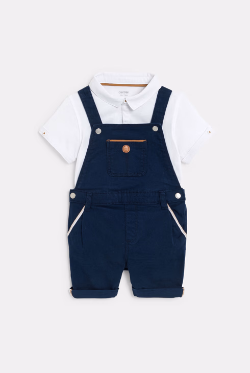 Salopette corta in cotone e polo blu neonato