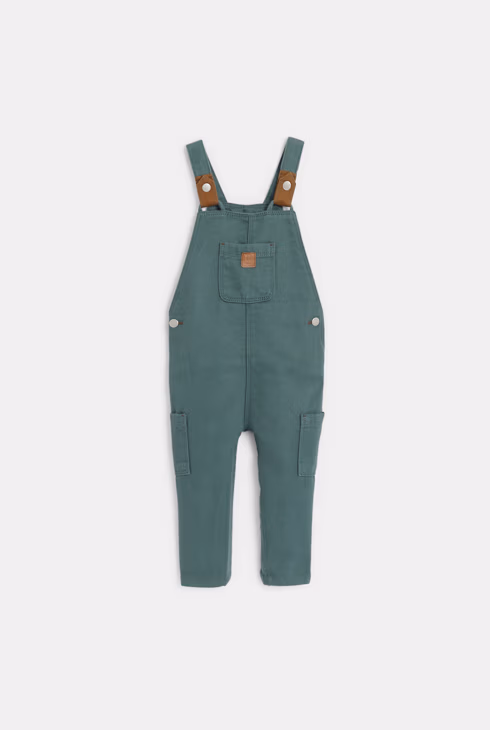 Salopette lunga in denim verde neonato