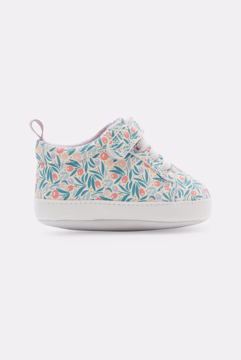 Scarpe da tennis in tela stampata a fiori bianche nascita