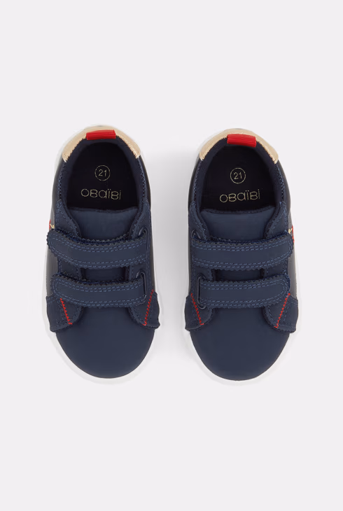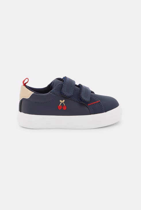 Scarpe da tennis ricamate con ciliegie con chiusura a strappo blu bimba