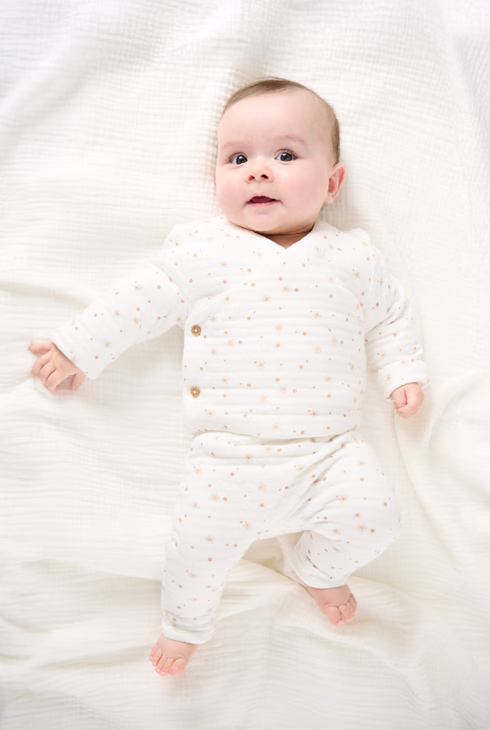 Set 3 pezzi in cotone bianco con stelle nascita neonato
