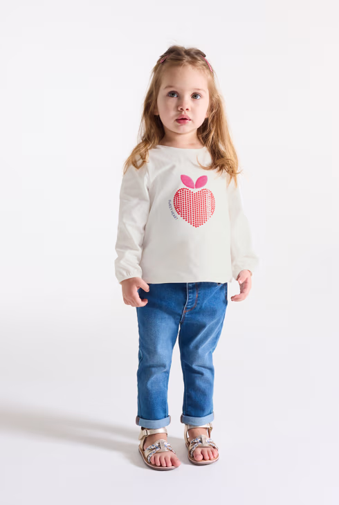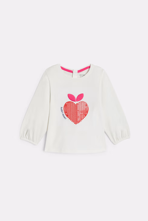 T-shirt a maniche lunghe bianca a cuori con paillettes per neonata