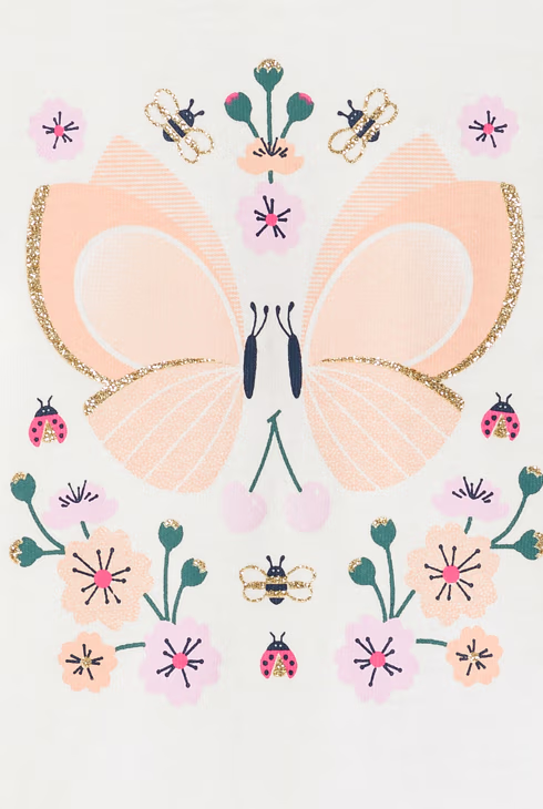 T-shirt a maniche lunghe bianca con farfalle per neonata