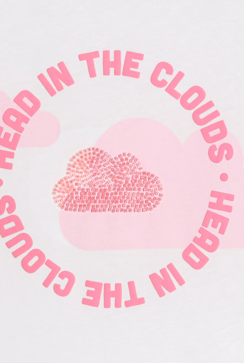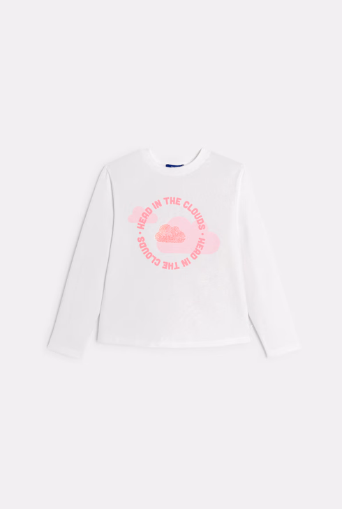 T-shirt a maniche lunghe bianca con nuvola bambina