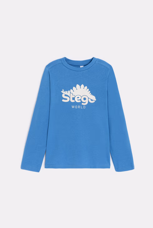 T-shirt a maniche lunghe con motivo dinosauro blu bambino