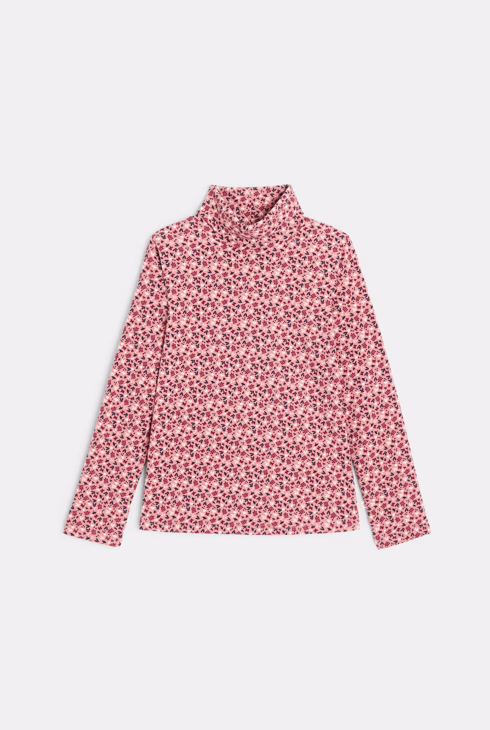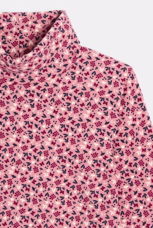 T-shirt a maniche lunghe malva con collo dolcevita e stampa per Bambina