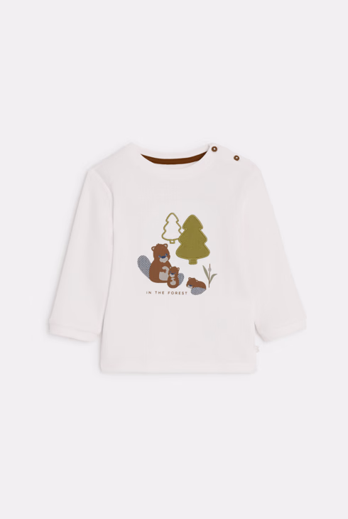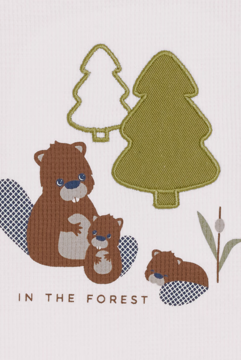 T-shirt a nido d'ape bianca con castoro neonato
