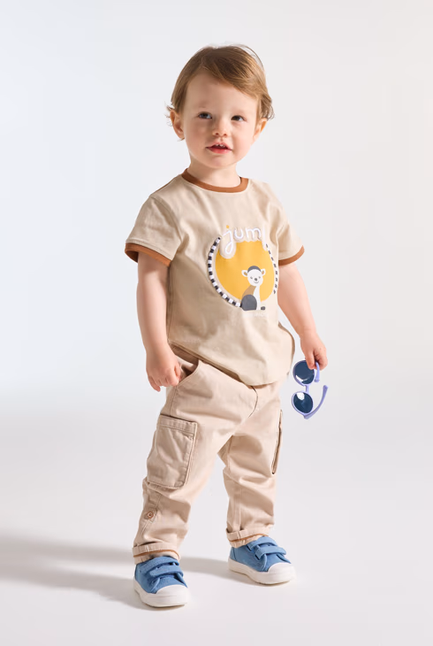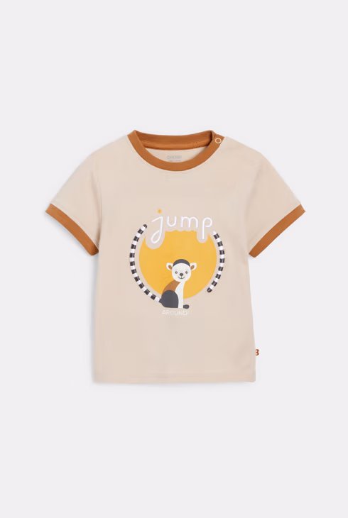 T-shirt beige con lemure neonato