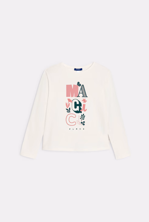 T-shirt bianca a maniche lunghe con scritta per bambina