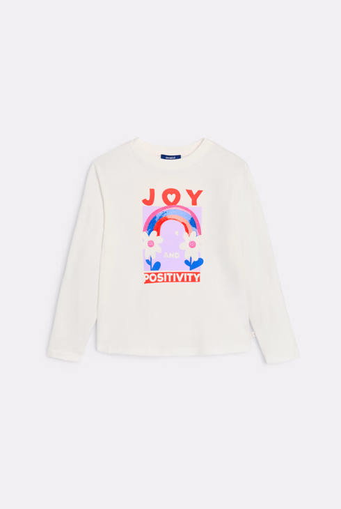 T-shirt bianca a maniche lunghe con scritta per bambina