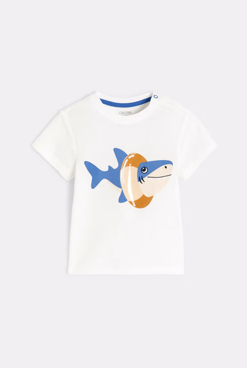 T-shirt bianca con squalo con boa per neonato