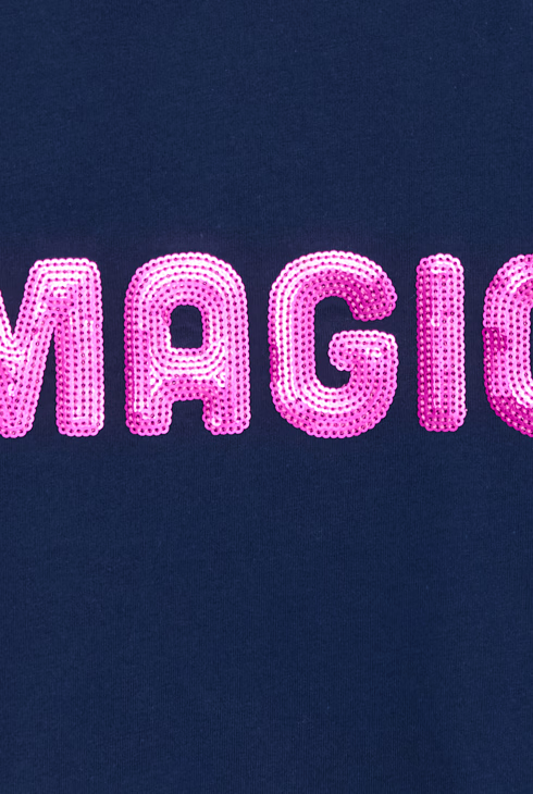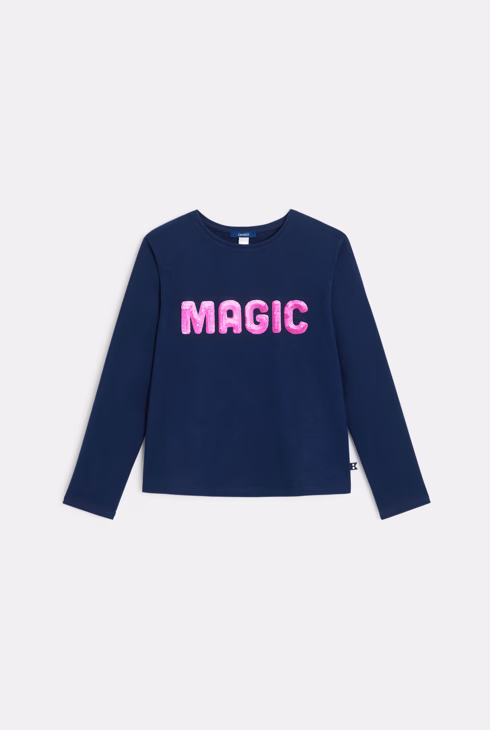 T-shirt blu navy a maniche lunghe con scritta per Bambina