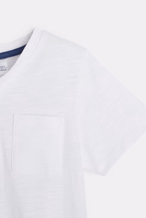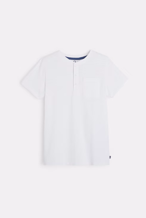 T-shirt con collo a serafino tinta unita bianco bambino