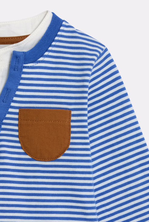 T-shirt con collo serafino blu a righe per neonato