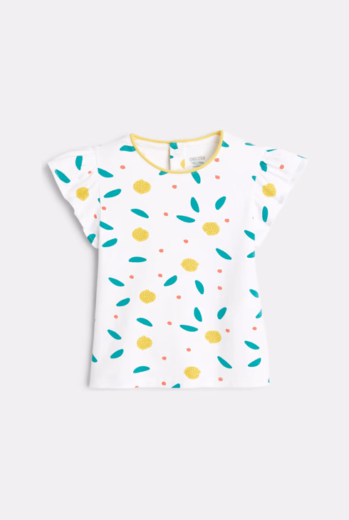 T-shirt con maniche a volant frutti giallo bimba