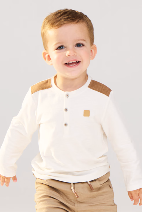 T-shirt fiammata alla tunisina con toppe bianco bimbo