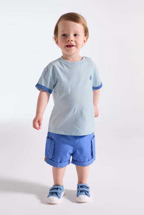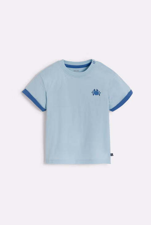 T-shirt in jersey blu con granchio neonato