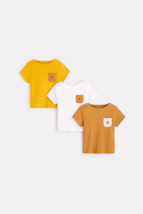 T-shirt in jersey con tasca sul petto (set di 3) giallo bimbo