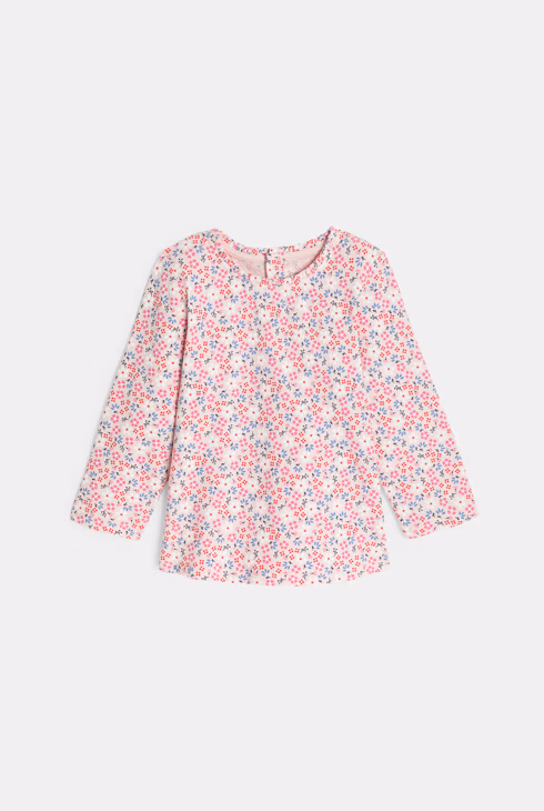 T-shirt in maglia a coste piatte con motivo floreale rosa neonata
