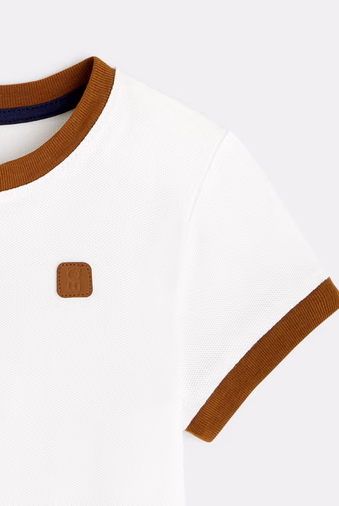 T-shirt in maglia piquet con collo serafino bianco bimbo