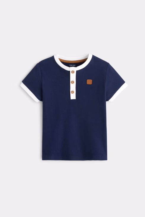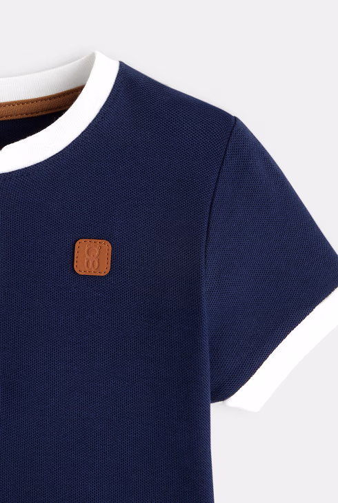 T-shirt in maglia piquet con collo serafino blu bimbo