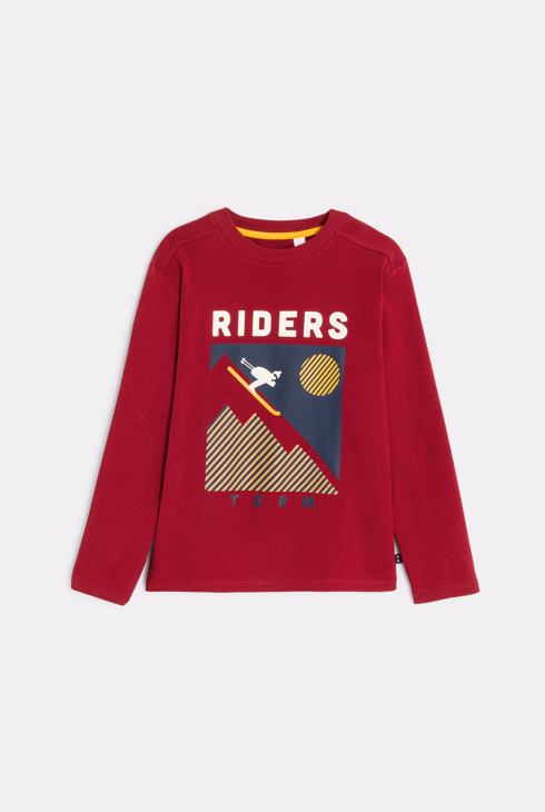 T-shirt rossa a maniche lunghe con motivo per Bambino