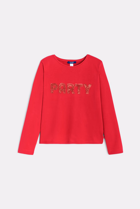 T-shirt rossa a maniche lunghe con scritta per Bambina