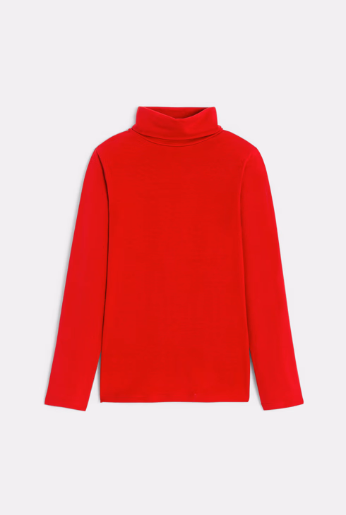 T-shirt rossa collo dolcevita e maniche lunghe per bambino