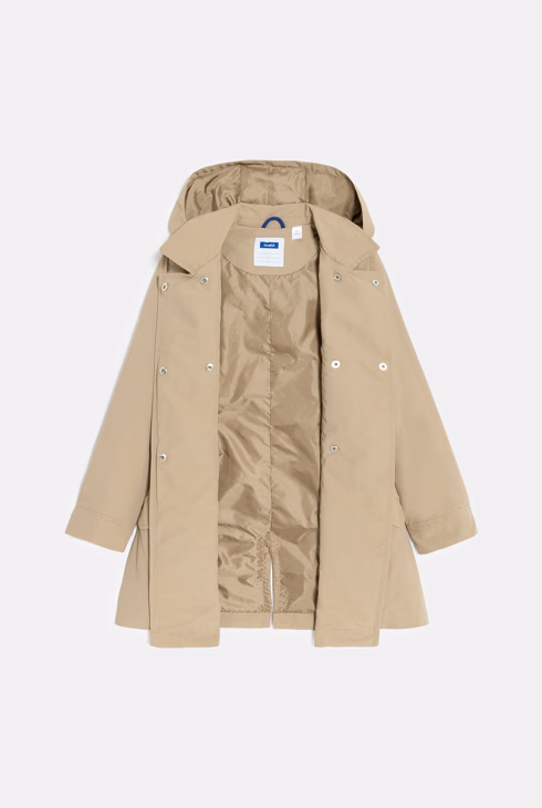 Trench impermeabile con cappuccio beige bambina