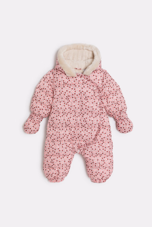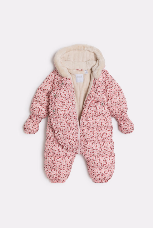 Tuta imbottita con fodera in pelliccia rosa con frutti stampati neonata