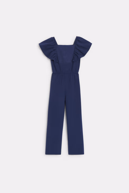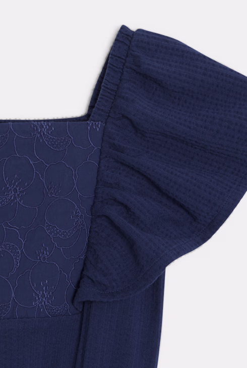 Tuta-pantalone a maniche corte ricamata blu navy bambina