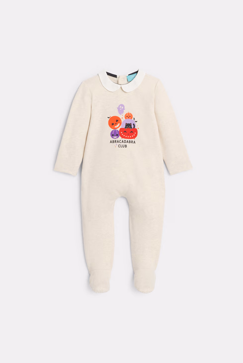 Tutina pigiama con motivi luminosi zucca beige neonata