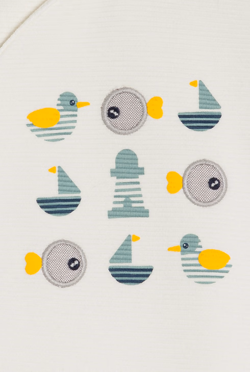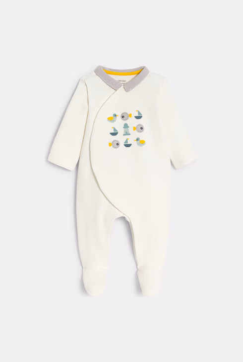 Tutina pigiama in cotone bianco con pesci fantasia per neonato